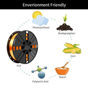 Comprometidos con el medio ambiente, este filamento está elaborado a partir de materiales vírgenes, biodegradables y respetuosos con el entorno. Su naturaleza no tóxica y de bajo olor lo hace seguro para el usuario y adecuado para entornos educativos y domésticos. Al elegir este filamento, contribuyes a prácticas de impresión 3D más sostenibles.