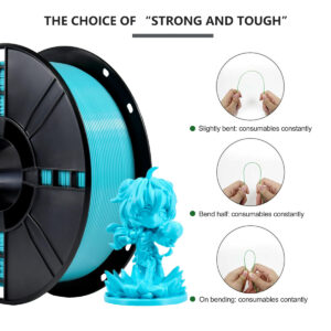 Filamento PLA en color azul cielo, biodegradable y de alta calidad, ideal para proyectos de impresión 3D y moldeo, compatible con la mayoría de impresoras 3D.