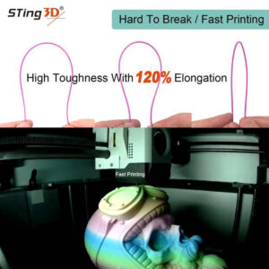 filamento PLA arcoíris de alta calidad con cambio rápido de color, ideal para impresiones FDM precisas y visualmente impactantes. Compatible con la mayoría de impresoras 3D.