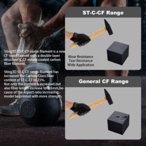 Filamento de PLA reforzado con fibra de carbono. Alta rigidez, baja deformación y precisión ±0.03 mm. Ideal para impresión 3D FDM profesional.