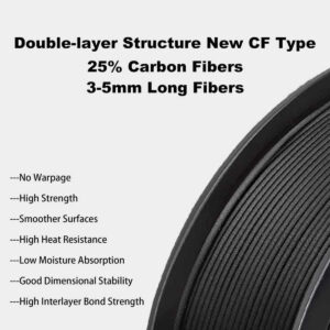Filamento PLA reforzado con fibra de carbono, diámetro de 1.75mm, peso de 1KG. Ofrece alta resistencia y precisión para impresoras 3D FDM.