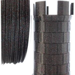 Filamento PLA negro con acabado glitter galáctico, ideal para impresiones 3D de alta precisión, resistencia y un toque visual impactante