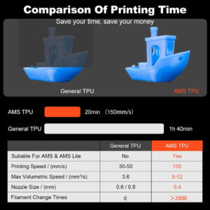 Filamento TPU AMS de 1.75mm con alta elasticidad, resistencia al desgaste y excelente precisión para impresión 3D profesional.